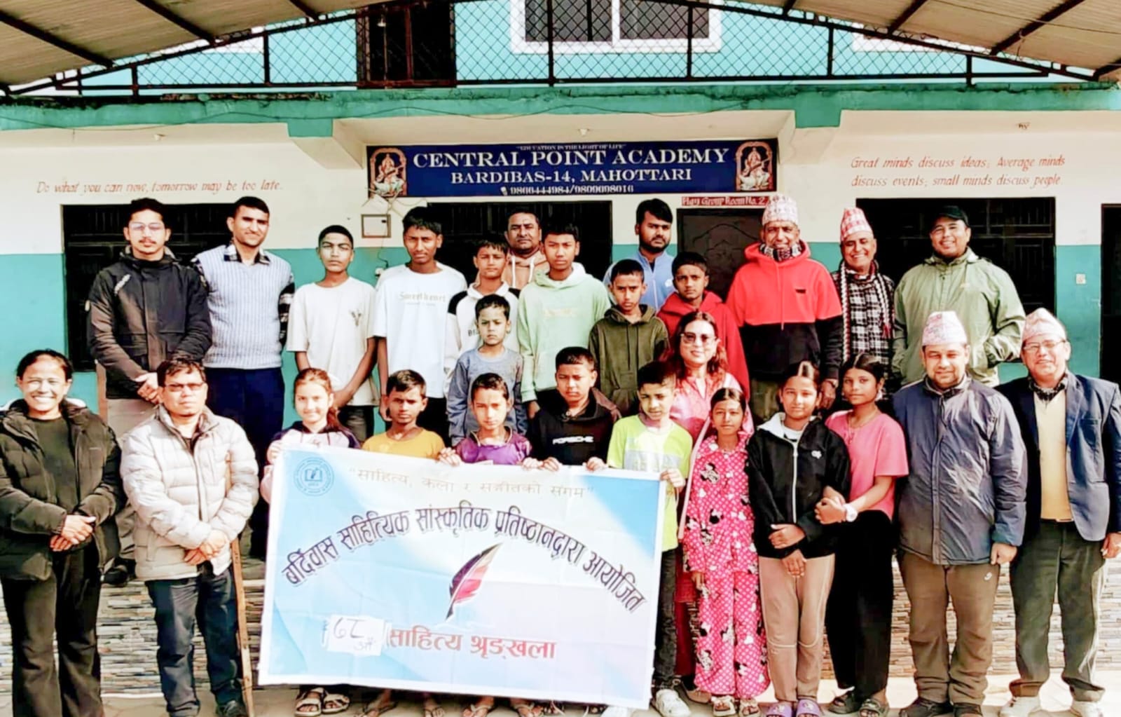 कार्यक्रममा बोल्दै अतिथि रामचन्द्र पौडेलले बर्दिबास साहित्यिक-सांस्कृतिक प्रतिष्ठानको मुख्य उद्देश्य भनेको विद्यालयहरूमा विद्यार्थीलाई साहित्यप्रति लाग्ने हौसला र प्रोत्साहन गर्दै साहित्यिक समूह निर्माण गरी कार्यक्रम सञ्चालन गर्ने र प्रत्येक विद्यालयमा साहित्यिक फूलबारी बनाउने ध्येयका साथ आज यहाँ कार्यक्रम गरिएको हो भन्ने कुरा स्पष्ट पारेका थिए।