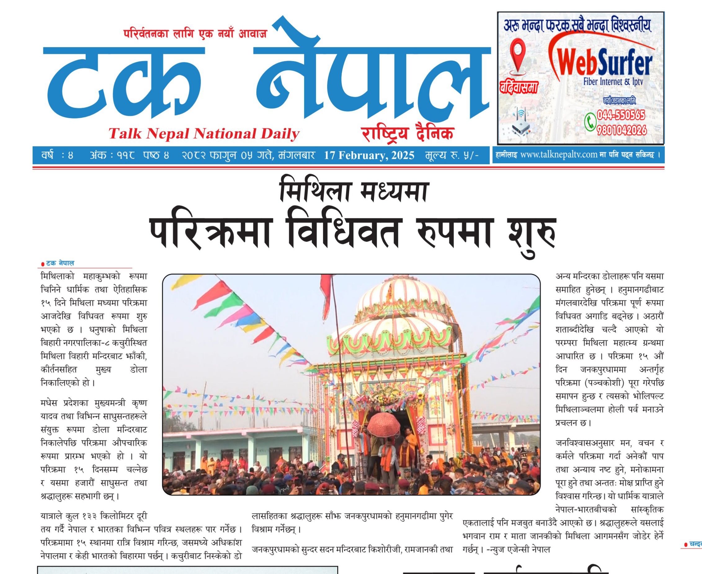 टक नेपाल राष्ट्रिय दैनिक २०८२ फागुन ४ गते सोमबार