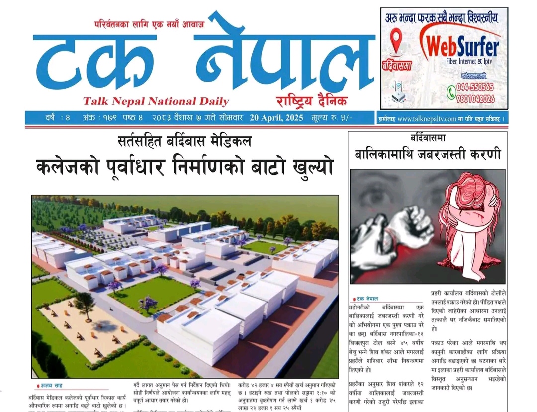 टक नेपाल राष्ट्रिय दैनिक २०८३ वैशाख ७ गते सोमबार