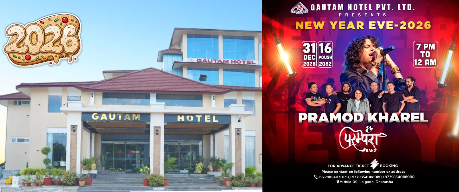 प्रमोद खरेलको लाइभ प्रस्तुति सहित नयाँ वर्ष उत्सव गौतम होटलमा